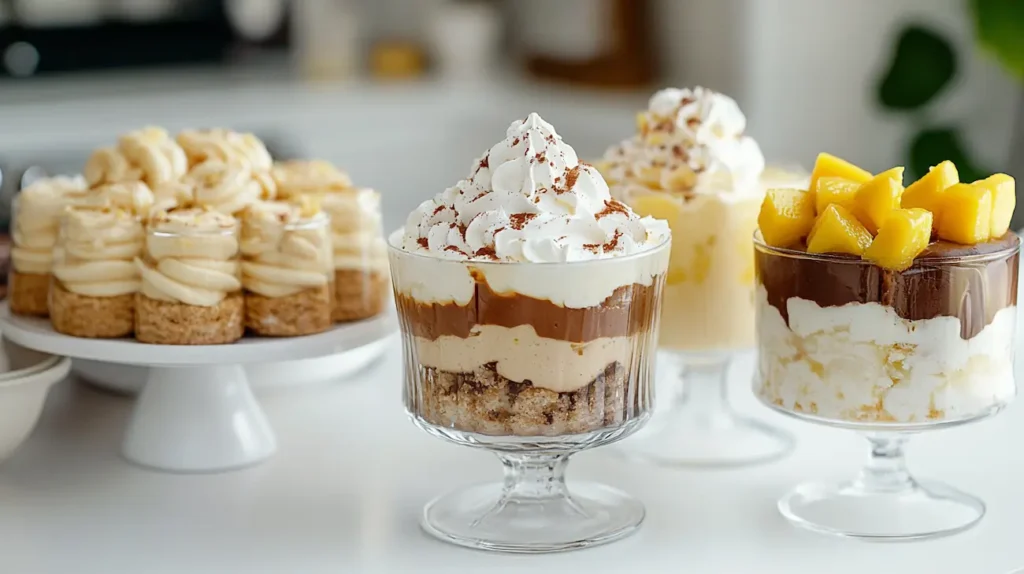 This category includes several cozy favorites. Pudding desserts are one of the easiest examples, with soft creamy layers and simple ingredients. Chilled layered desserts often combine cookies, cream, pudding, or whipped fillings to create that lovely make-ahead texture. Icebox desserts usually rest in the refrigerator long enough for the layers to soften and settle together. Creamy dessert cups are another beautiful option, especially when you want individual servings that feel light, elegant, and easy to serve.